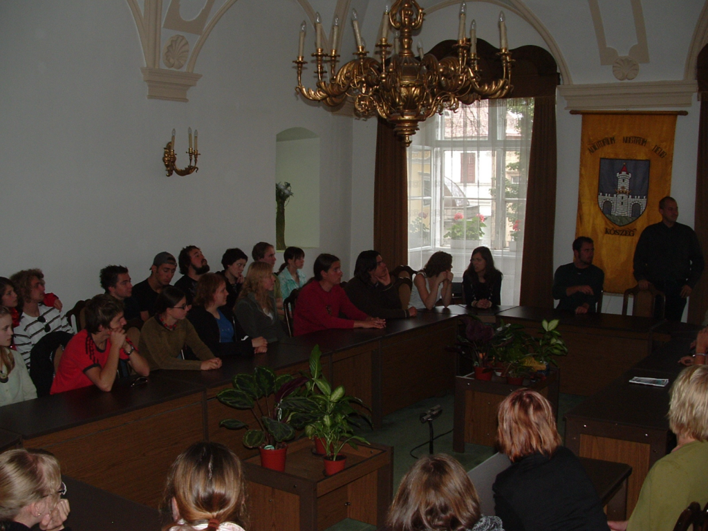 Fogadta a csoportot a Városházán Schlögl Krisztián EU referens, aki maga is sokat tesz a város külkapcsolataiért, a különböző népek fiataljainak találkozásáért. Röviden ismertette a az egyes települések választási rendszerét, s kérdésekre válaszolt.