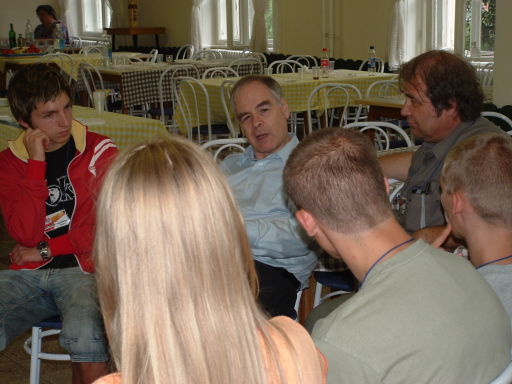 Nagy megtiszteltetés volt számunkra, hogy mindjárt az első nap Dr Schöpflin György, az Európa Parlament képviselője mondott néhány gondolatot az Unió jelenéről és jövőjéről. Még érdekesebb volt a fiatalok számára a kis kerek asztal beszélgetés, amelyen természetesen nem mind a 60 fő vett részt, hanem az a mintegy 15 fő, akiket a téma különösen érdekelt. A beszélgetés során sok minden előkerült: tudományos munkássága, közéleti szereplése. A fiatalok hihetetlenül kinyíltak, bátran kérdeztek, beszélgettek.